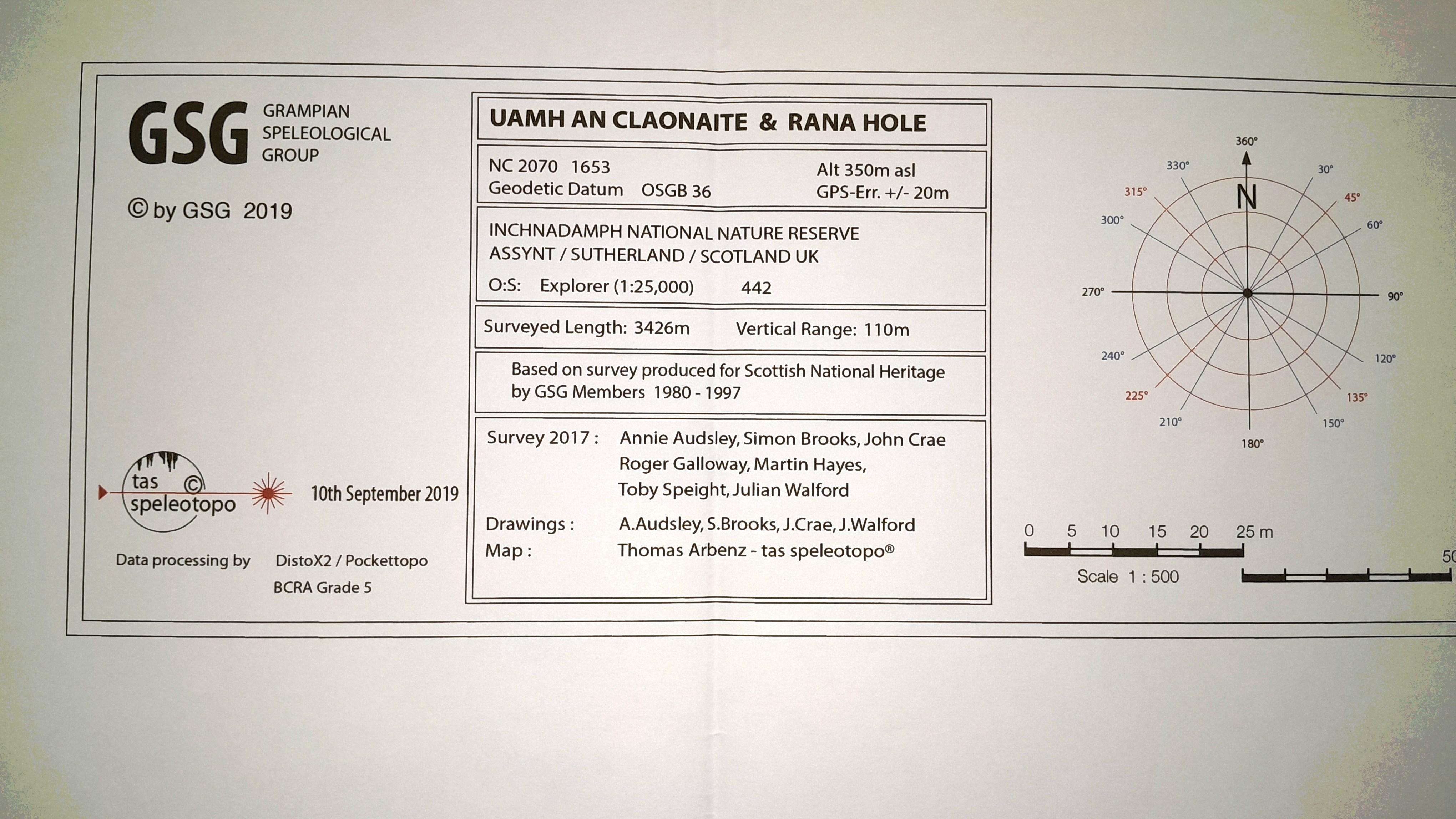 | Survey Salon | Judged Surveys | Highly Commended | Thomas Arbenz | Uamh An Claonaite and Rana Hole | Aventure Verticale Tee Shirt, Survey pouch and gear loop; plus a Ceris Jones artwork | rana |